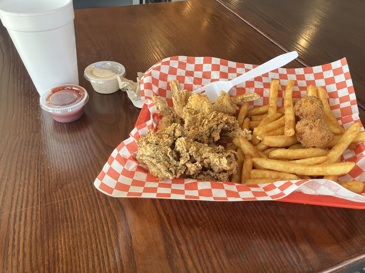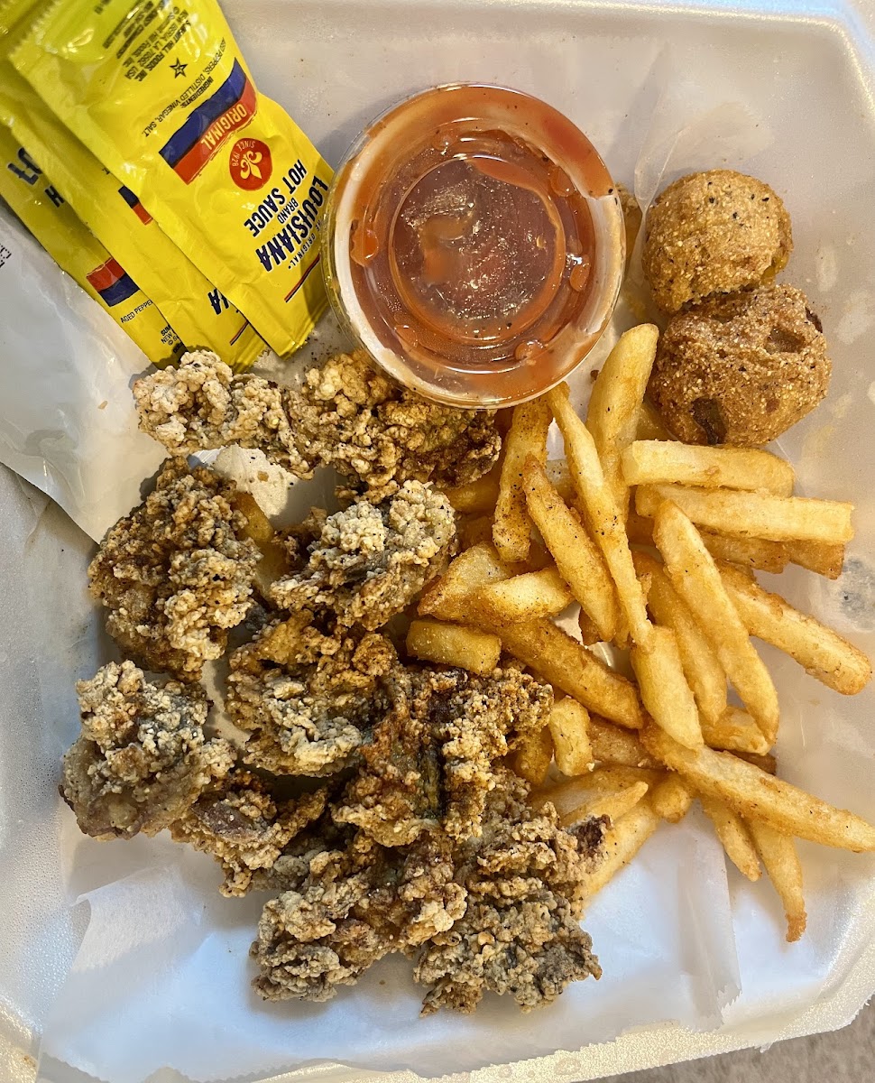 Craving fried oysters? This is the spot! I was specifically searching for fried oysters, crispy and cooked just right, and this place absolutely delivered. They fry them to that perfect golden crunch I love. The service is always top-notch: friendly, fast, and pleasant every time. I usually order takeout, and it’s always quick and convenient. Highly recommend this place to any seafood lover looking for quality and flavor! Oyster photo below is half eaten, I couldn’t help myself before realizing I forgot to snap a shot. **UPDATE** You must also try the seafood boil, they have the freshest crawfish I have tasted since moving to DFW.